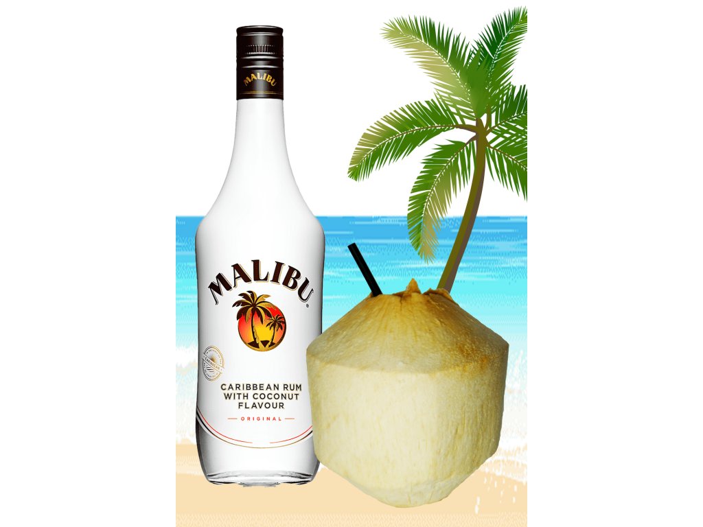 Mladý kokos s panákem 0,04 Malibu 21%.